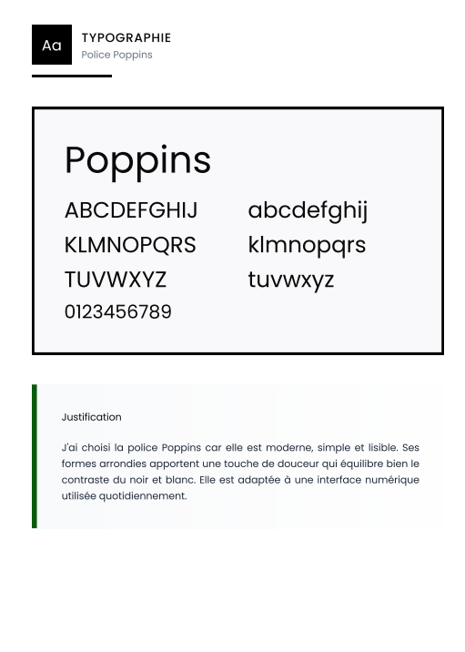 Le projet s’est déroulé à la fois de manière individuelle et en groupe. J’ai entièrement réalisé la conception du design system sur Figma, tandis que le wireframe final a été développé en collaboration avec deux autres étudiants. Cette organisation m’a permis d’allier autonomie créative et travail d’équipe.