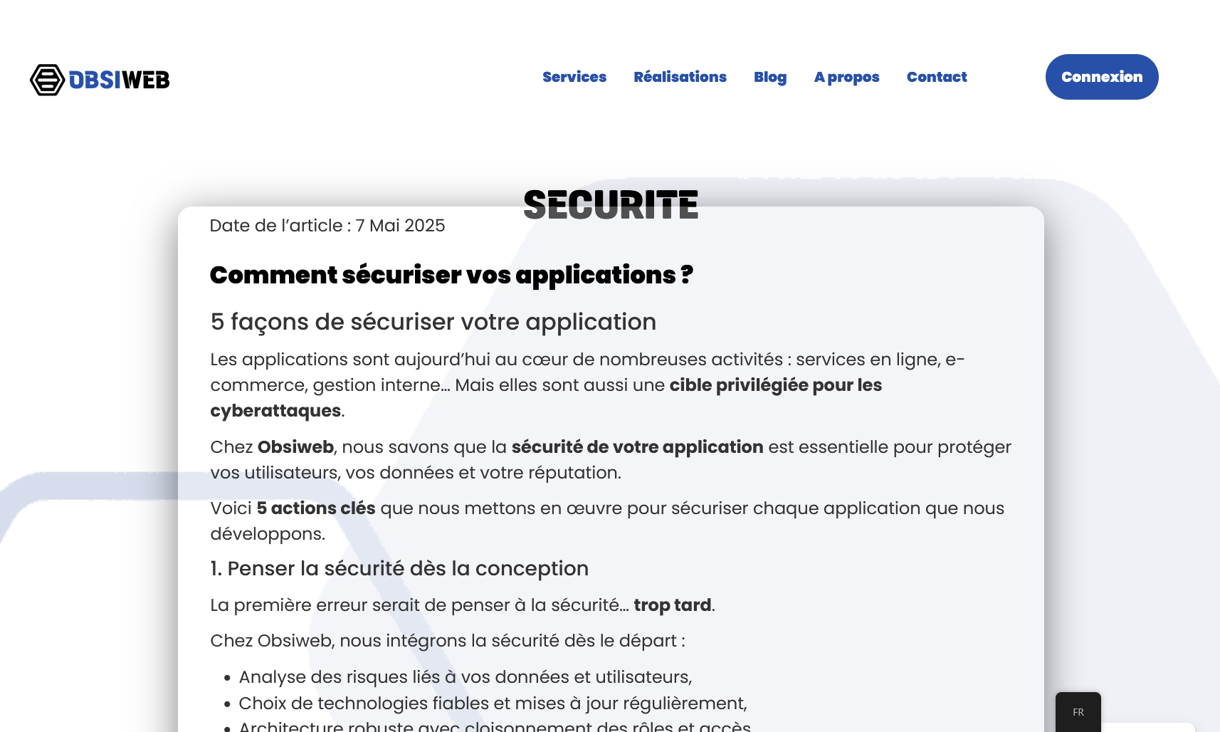 Dans le cadre du deuxième semestre du BUT MMI (S2), j’ai rédigé un article de blog destiné au site d’une agence de développement web fictive créée lors d’un projet de formation. Cet article avait pour thème la sécurisation des applications web et présentait cinq bonnes pratiques essentielles pour protéger un site ou une application contre les menaces les plus courantes.